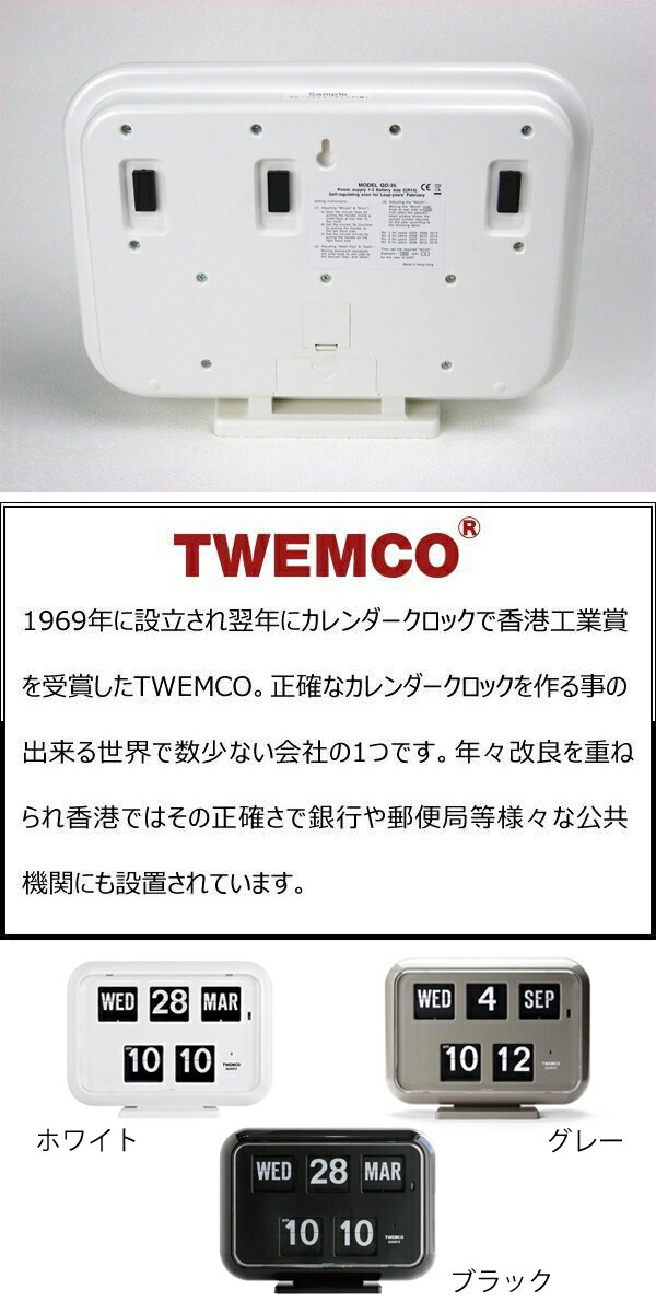 TWEMCO トゥエンコ 置き掛け兼用時計 QDー35 レトロスタイル パタパタカレンダー時計 インテリア