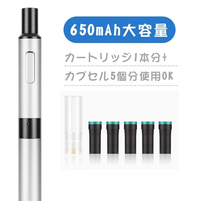 ■ 650mAh大容量、カートリッジ1本+タバコカプセル5個分の使用可能、出先で長時間使用でも電池切れの心配なし!