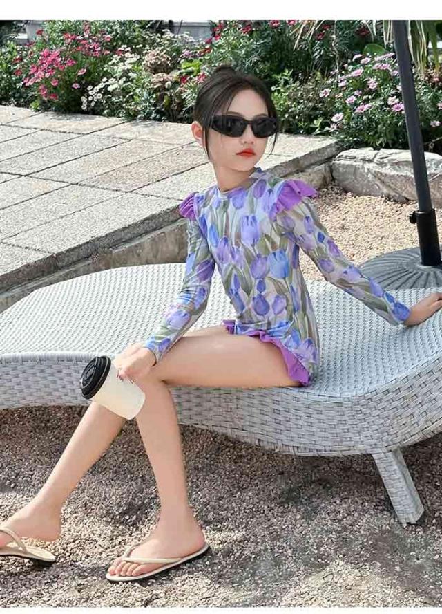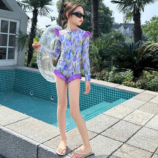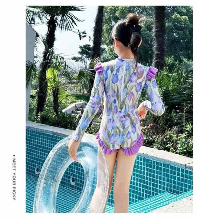 キッズ 水着 子供水着 女の子 ins 韓国 ワンピース 海辺 子ども用 スクール水着 ガールズ ベビースイミング 小学校 入園グッズ 女児 おしゃれ 花柄 キッズみずぎ 温泉 ハワイ 旅行 可愛い プール パープル 120-170
