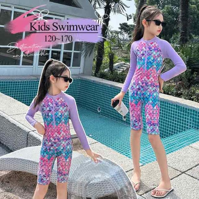 キッズ 水着 子供水着 人魚姫 女の子 ins 韓国 ワンピース 海辺 子ども用 スクール水着 ガールズ ベビースイミング 小学校 入園グッズ 女児 おしゃれ キッズみずぎ 温泉 ハワイ 旅行 可愛い プール パープル 120-170