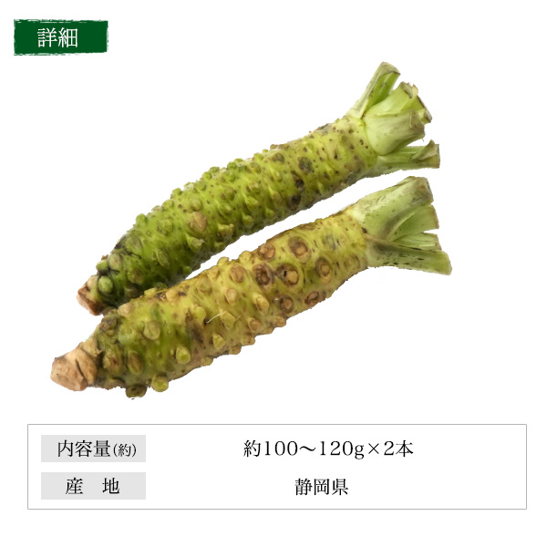 本わさび 大サイズ 約100〜120g×2本 静岡県産 生わさび お刺身 寿司 蕎麦 うなぎ 焼肉 ステーキ等に 生わさび 生山葵 山葵 生ワサビ 水わさび 風味豊か 高級食材 ご褒美 休日 グルメ お取り寄せ