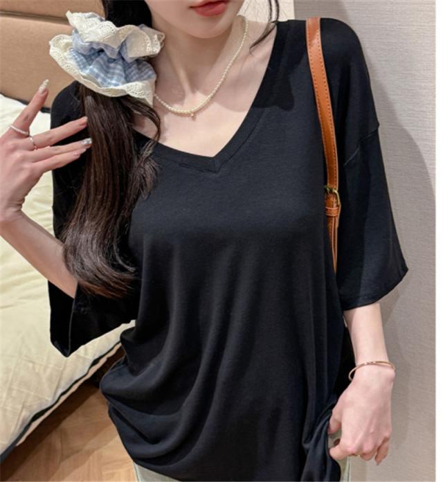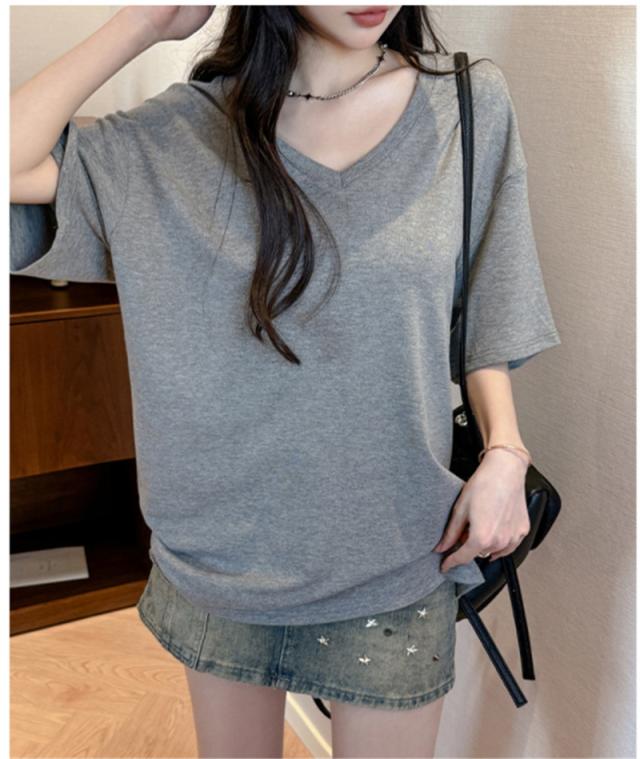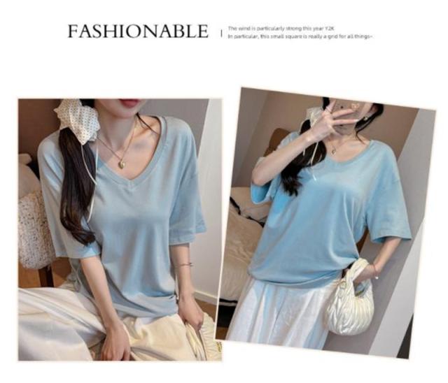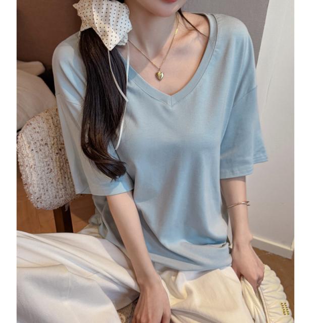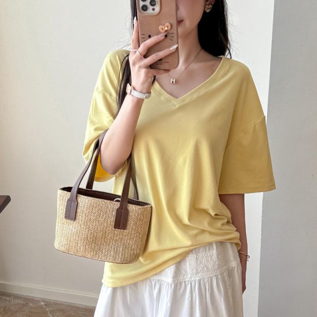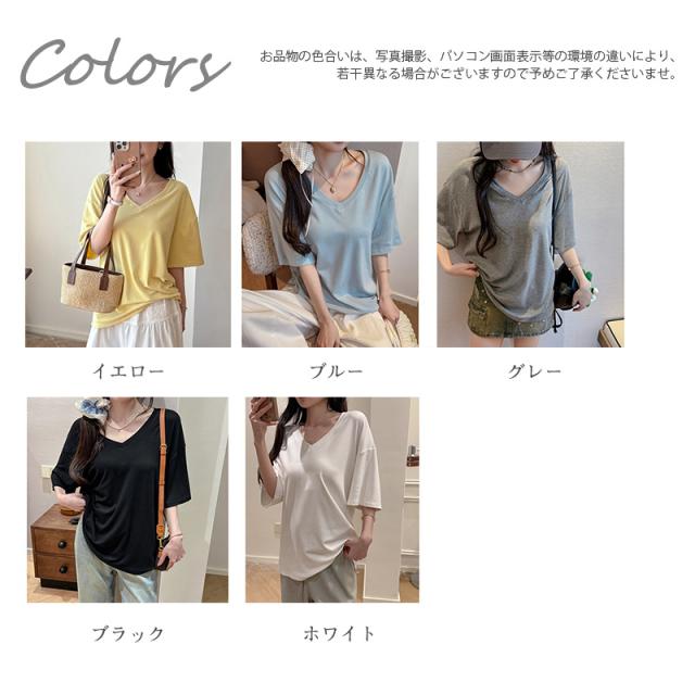 tシャツ レディース 半袖 夏 カットソー ドロップショルダー Vネック ゆったり ブラウス トップス 大きいサイズ 無地 部屋着