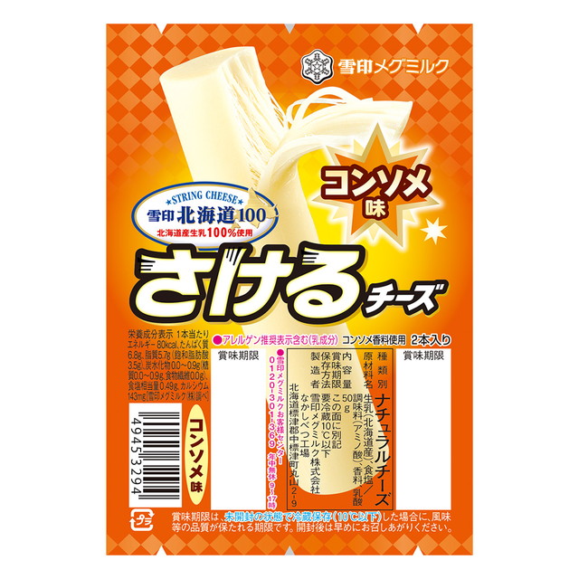 商品名 [冷蔵] 雪印メグミルク 雪印北海道100 さけるチーズ (コンソメ味) 50g×12個 容量 50g×12個 原材料名 生乳(北海道産)、食塩/調味料(アミノ酸)、香料、乳酸 アレルギー特定原材料 乳 賞味期限 商品の発送時点で、30日以上あるものをお届けいたします 保存方法 10℃以下で保存してください。