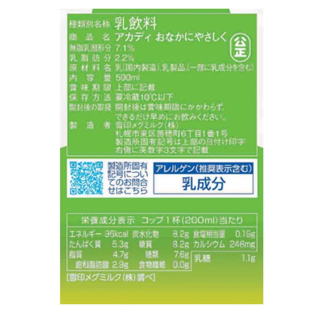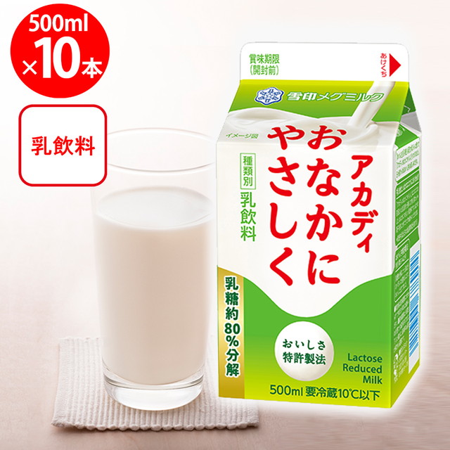商品名 [冷蔵] 雪印メグミルク アカディおなかにやさしく 500ml×10本 容量 500ml×10本 原材料名 乳(国内製造)、乳製品、(一部に乳成分を含む) アレルギー特定原材料 乳 賞味期限 商品の発送時点で、7日以上あるものをお届けいたします 保存方法 要冷蔵10℃以下で保存してください。