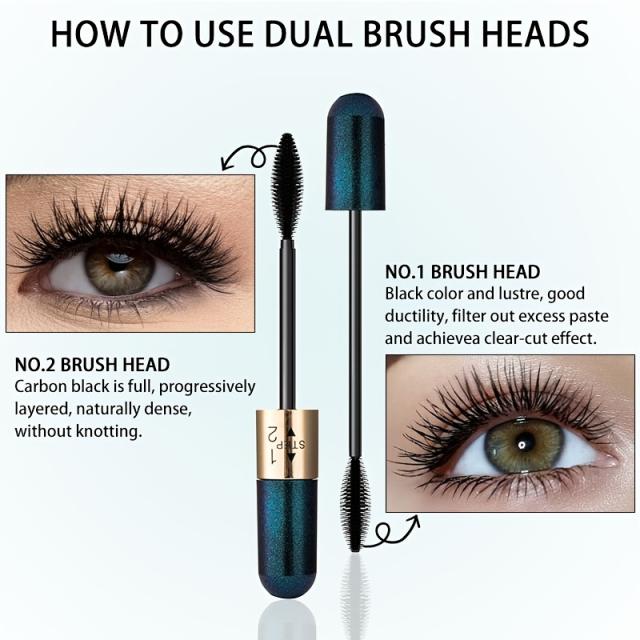 2-in-1 4Dファイバーマスカラ:超防水、カール&伸ばし、ボリュームアップブラック、全肌質対応、9g/0.32oz - バレンタインデーと感謝祭の女性への完璧なギフト、アイメイク