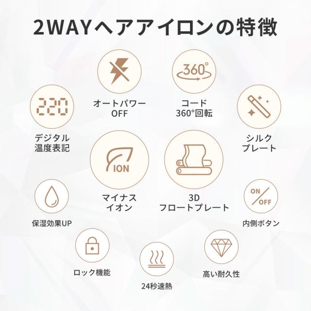 【期間限定 ポイント10倍】ヘアアイロン ストレート カール 温度調整 アイロン 髪 マイナスイオン 急速加熱 ヘアケア プロ仕様 2WAY ストレート ヘアーアイロン 速熱 軽量 ストレートアイロン カールアイロン 美容家電 コンパクト 女性 プレゼント