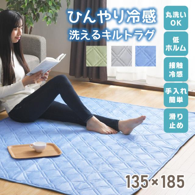 ひんやり冷感 洗えるキルトラグ【135×185cm】
