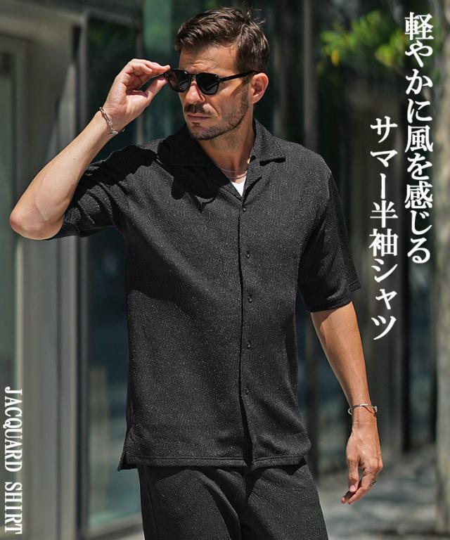 半袖シャツ メンズ ジャガード 開襟 柄 オープンカラーシャツ 新作 春 夏 オラオラ系 お兄系 ちょい悪 メンズファッション