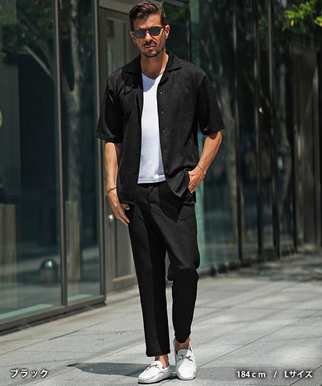 上下セット メンズ 半袖シャツ セットアップ メンズ オープンカラーシャツ 開襟シャツ 新作 春 夏 オラオラ系 お兄系 ちょい悪 メンズファッション