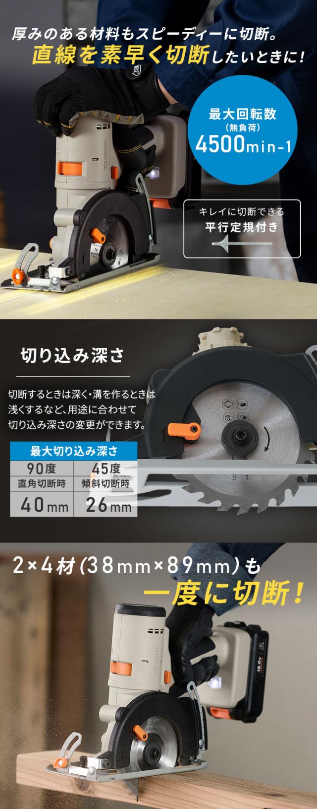 切断するときは深く・溝を作るときは浅くするなど、用途に合わせて切り込み深さの変更ができます。