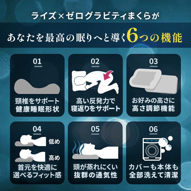 [keyword|洗える 枕 高反発 ピロー ウェーブ型 30×50 RISE Zero Gravity SLEEP MAGIC 高さ調節 横向き寝 頚椎 体圧分散 寝返り 洗える 清潔 三次元構造 RISE ライズ ゼログラビティ リラックスピロー スリープマジック]