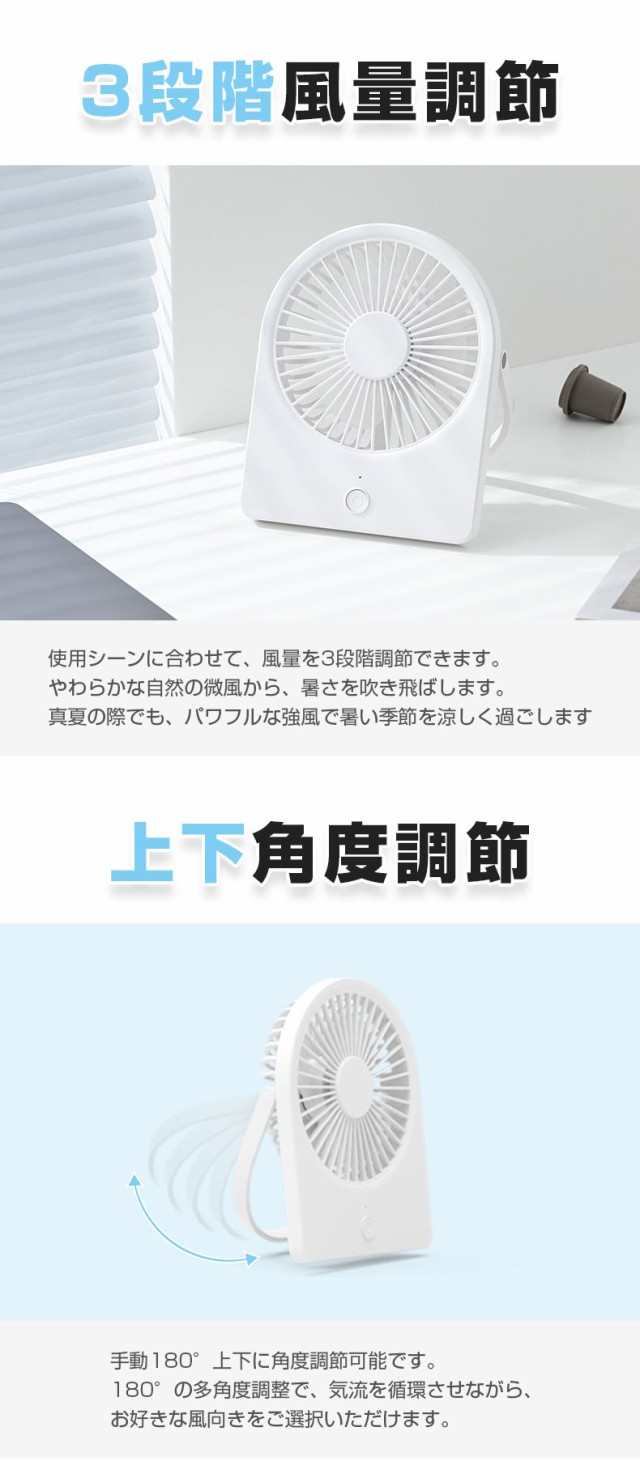 卓上扇風機 ミニ扇風機 USB 静音 小型 扇風機 180°角度調整 デスク扇風機 USB充電式 コンパクト 風量3段階調節 卓上ファン 超強風 卓上ファン ポータブル