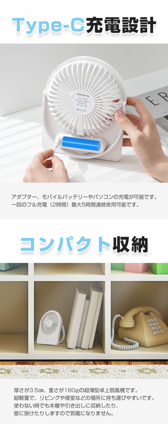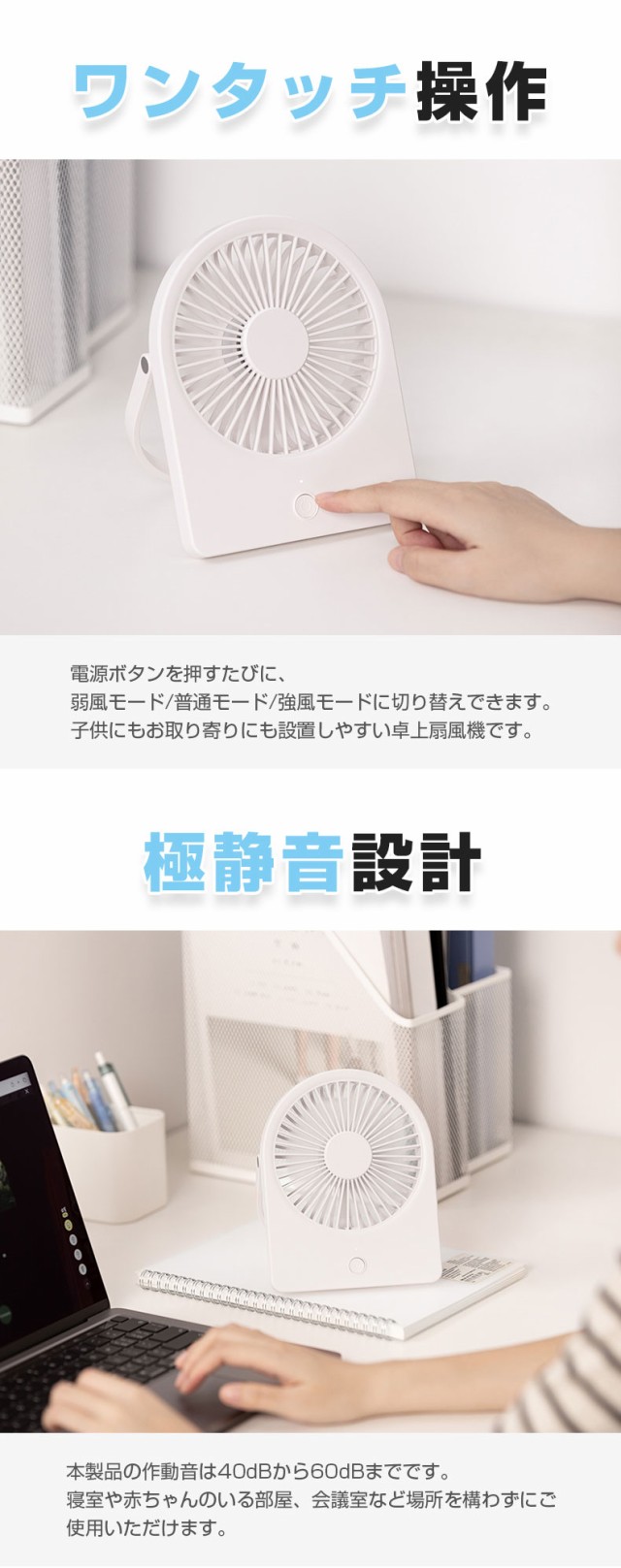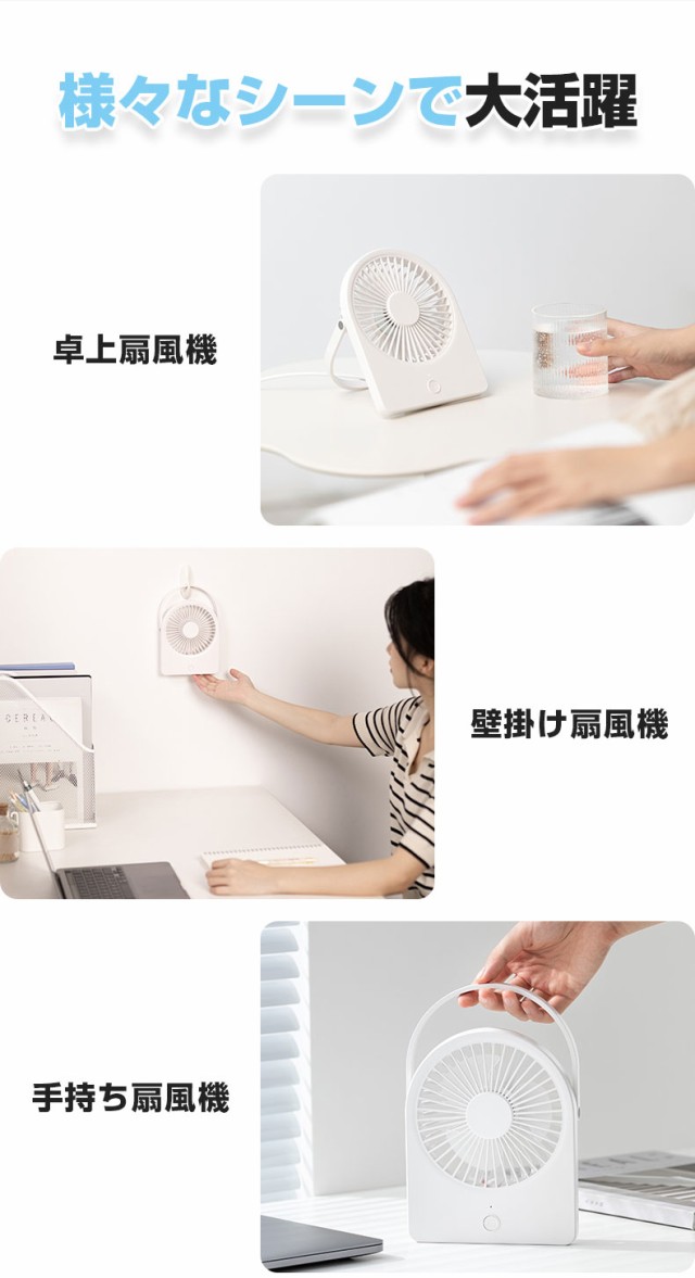 おしゃれなカラー、シンプルなデザイン、普段使いはもちろん、夏のプレゼントとして家族や友達へのプレゼントにも最適なミニ扇風機です。【壁掛け・卓上・手持ち3in1小型扇風機】