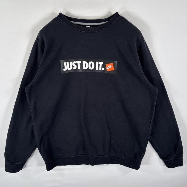 古着 ナイキ NIKE スウェット トレーナー クルーネック JAST DO IT ロゴプリント 大きいサイズ XL ブラック メンズ
