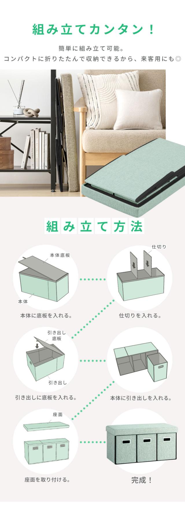 ※破損する恐れがあるため、収納ボックスとして使用するときは座らないでください。