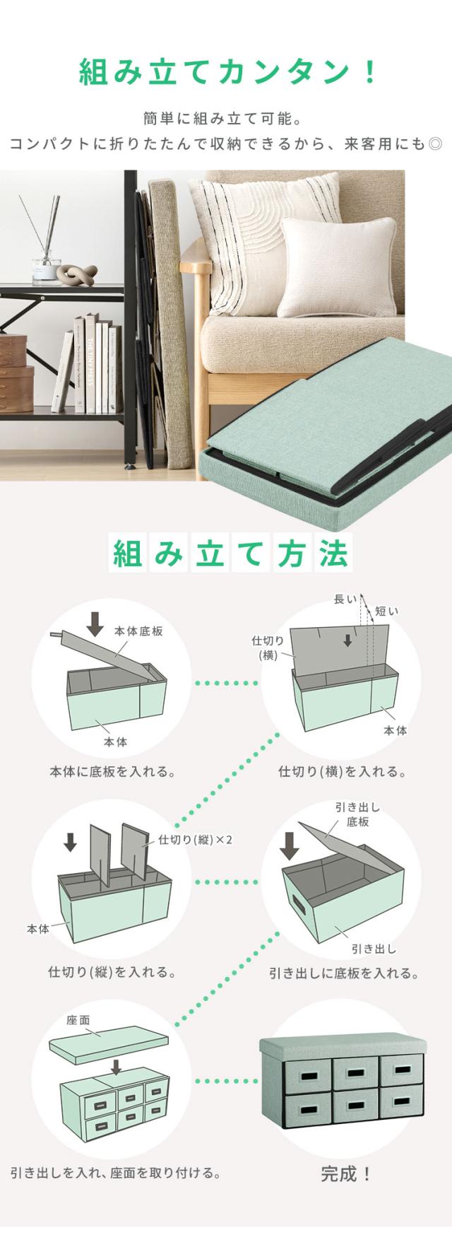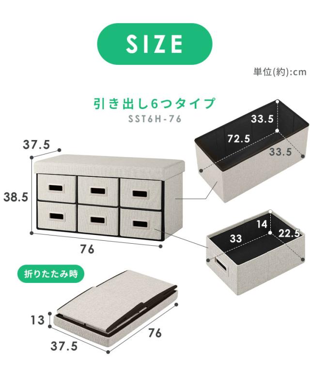 (検索用:座れる 収納ボックス スツール 収納 椅子 引き出し6個 幅76cm ベンチ ベンチソファ 長椅子 おもちゃ ペットボトル 小物 おしゃれ インテリア 組み立て簡単 ボックス BOX 収納付き 3way 引き出し収納ボックス 4967576785556 4967576785563 4967576785570)