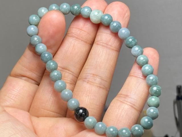 BR7-27 一点物 グレー青 6.0mm グアテマラ産 天然 本翡翠 ブレスレット
