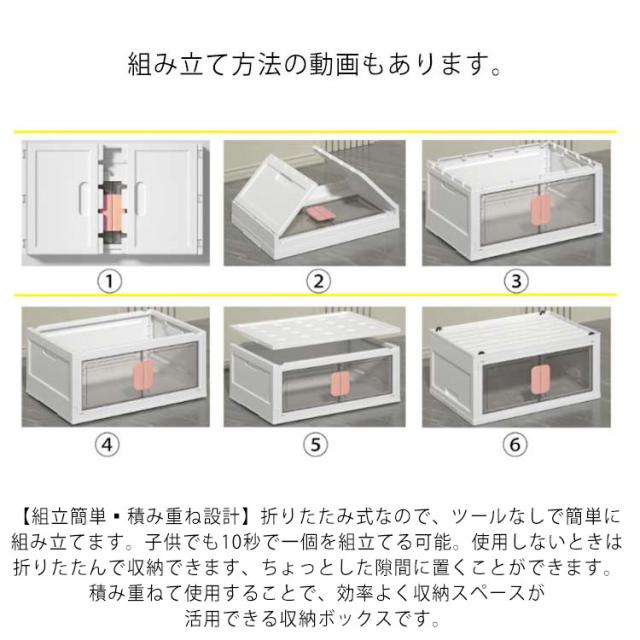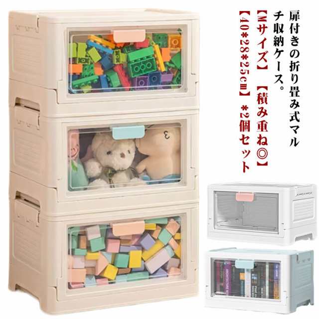 【2個セット】 収納ケース Mサイズ 折り畳み 収納ボックス フタ付き 押し入れ収納 衣類収納 収納棚 扉付き コンテナ 大容量 積み重ね 北欧 おしゃれ 横開き 完成品 プラスチック 頑丈 丈夫 リビング収納 マルチ収納 チェスト ホワイト 白