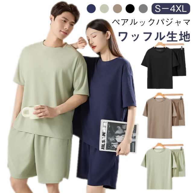 ゆったり メンズ 部屋着 男性 パジャマ 半袖 ルームウエア セットアップ レディース 女性 ルームウエア カップル 上下セット 夏 ワッフル生地 ナイトウェア 春 ペアルック 無地 腹巻 寝間着 リラックスウェア 男女兼用