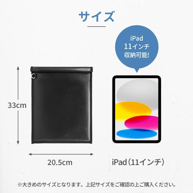 電波カット ケース ポーチ バッグ ipad 11インチ まで対応タブレット 大容量 電磁波防止 ケース 電磁波対策 電波遮断 ケース ポーチ 盗難防止 携帯 GPS カット スマホ スマートキー スキミング防止 キーケース 黒