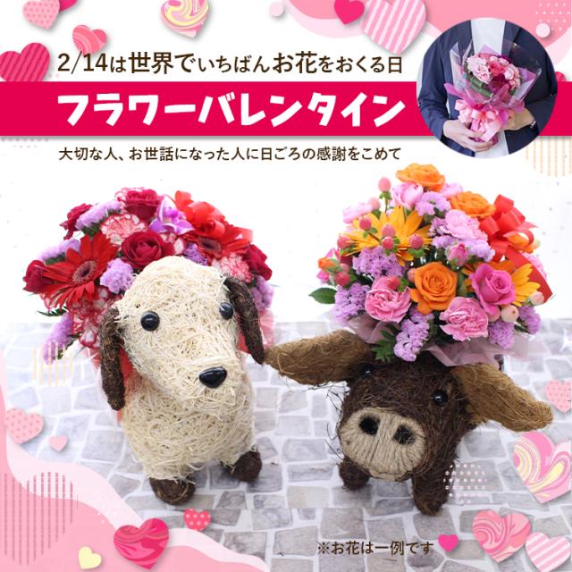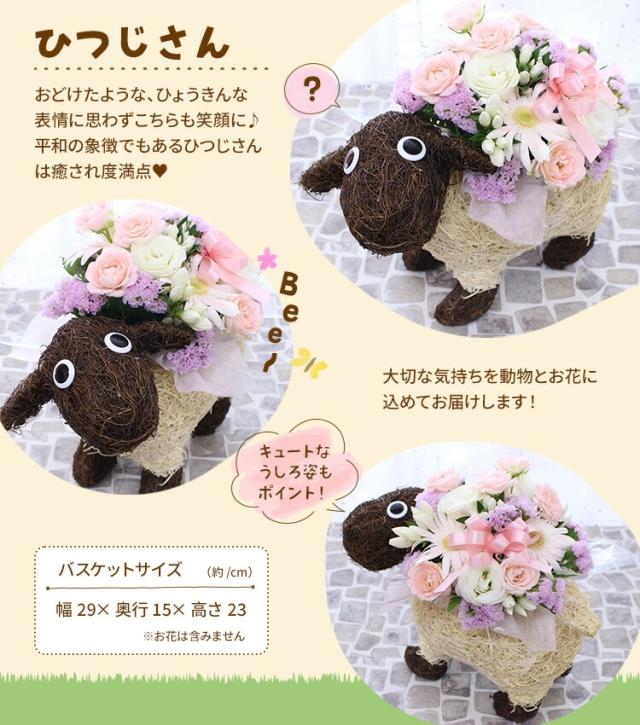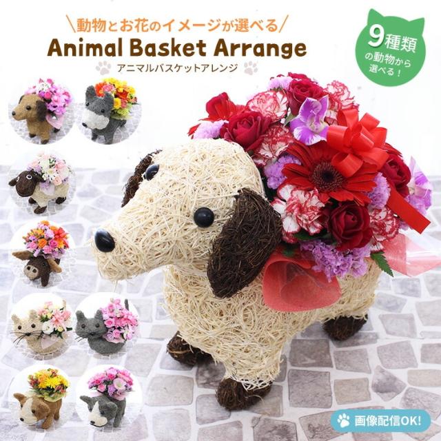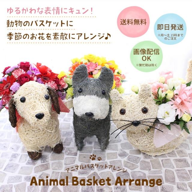 いい夫婦の日 動物とお花のイメージが選べる【アニマルバスケットアレンジ】愛妻の日 バレンタイン 送料無料 季節の花でおまかせ アレンジメント 母の日 誕生日 お祝い 記念日 結婚 出産 開店 お見舞い ペット イヌ ネコ ひつじ ブタ 即日発送 画像配信 [生花アレンジメント]