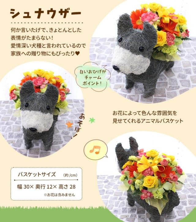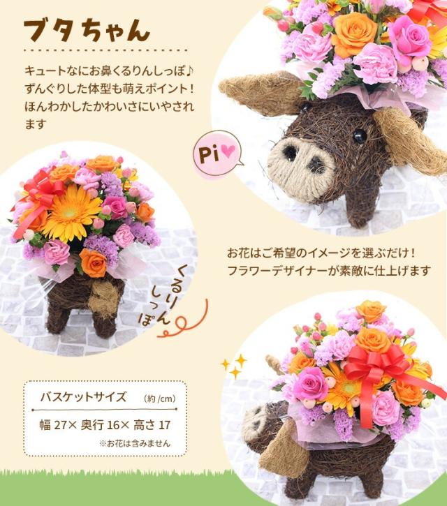 動物とお花のイメージが選べるアニマルバスケットアレンジ(生花アレンジメント)