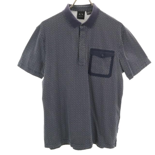 アルマーニエクスチェンジ 総柄 半袖 ポロシャツ M ネイビー ARMANI EXCHANGE メンズ