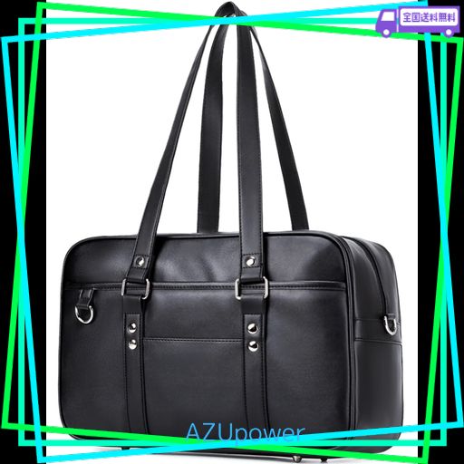 [CHUULII] スクールバッグ スクバ 合皮 女子 高校生 学生 JK 通学 通塾 ボスドンバッグ 大容量 肩紐長い (ブラック)