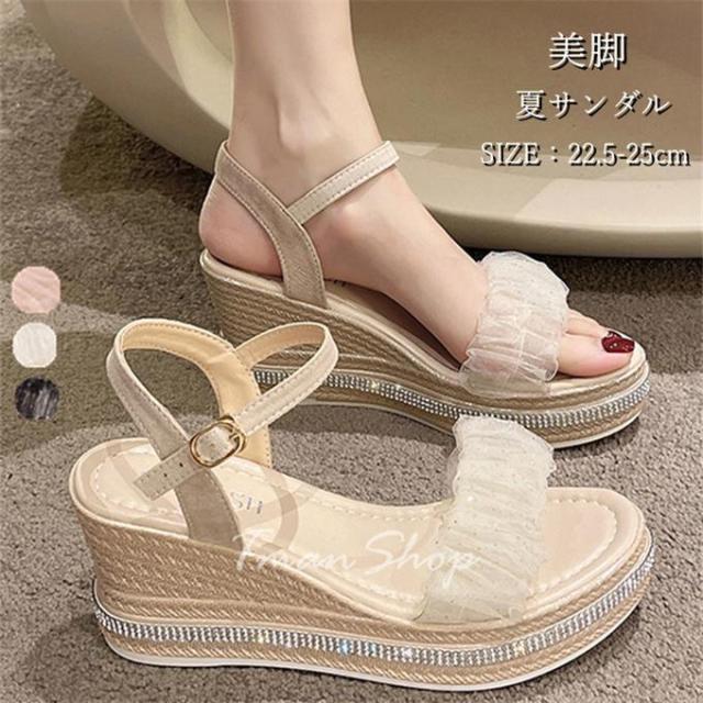 サンダル レディース ウェッジソール ビーチサンダル 厚底 靴 歩きやすい 柔らかい 疲れない 滑り止め 通勤 美脚 カジュアル おしゃれ 可愛い 夏 フェミニン
