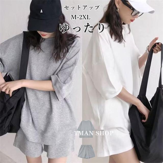 セットアップ レディース 半袖Tシャツ+ショートパンツ 上下セット 大きいサイズ 無地 カジュアル おしゃれ 通学 通勤 韓国ファッション 可愛い 夏