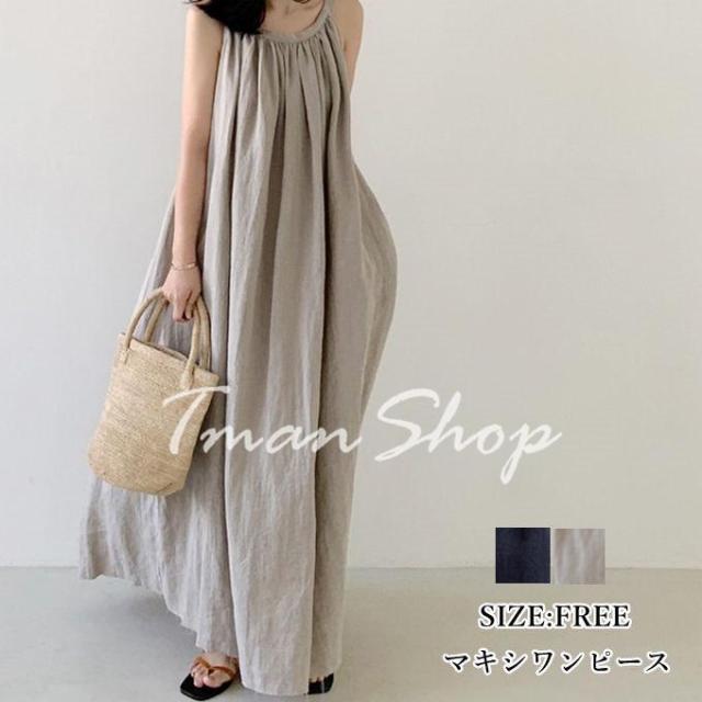 ワンピース マキシワンピース キャミワンピース レディース ロング丈 ノースリーブ Aライン 無地 ゆったり 着痩せ 体型カバー オシャレ リゾート 夏