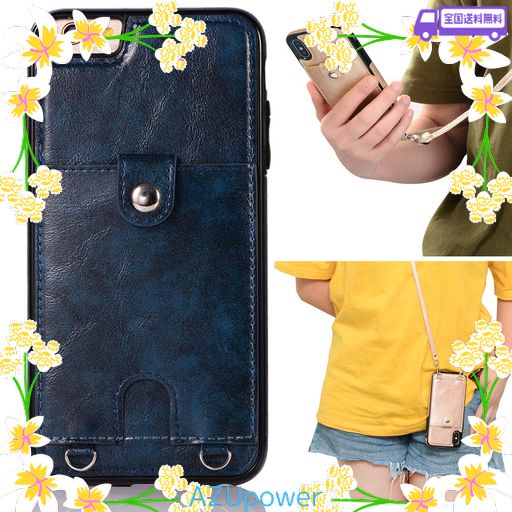 アイフォン7ケース アイフォン8ケース IPHONE 7 8 スマホケース IPHONE 7 ケース IPHONE 8 携帯カバーJAORTYカード収納 高質PU皮革 ショルダー 斜めがけ 肩掛け 首かけ おしゃれ 軽量- インディゴ