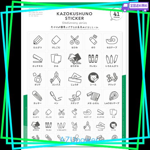 かぞく収納の「片づけが簡単にできる文房具めじるしシール」です。