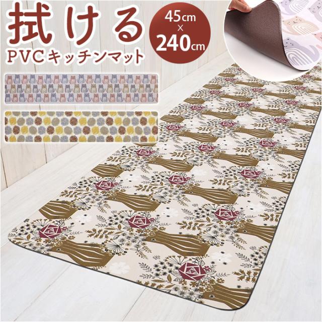 キッチンマット 拭ける 240 通販 拭けるキッチンマット キッチン マット 台所マット 足元マット 薄手 おしゃれ クッション 45cm 240cm 抗菌 防カビ 防炎 床暖房対応 ヨコズナクリエーション かわいい キッチンファブリック キッチン用品