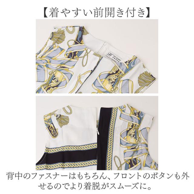 | 商品説明 | 【華やかなパーティやお呼ばれに】 ・ストール風の華やかなデザインが特徴♪お呼ばれシーンにピッタリなドレスが新発売。 【大胆なプリントで華やかに】 ・ストール風のデザインを大胆にプリントされた見た目で華やかに決まる。 【女性らしいタイトシルエット】 ・大人の雰囲気漂う、タイトなドレス。身体のラインをキレイに魅せてくれ、エレガントな印象♪ 【着やすい前開き付き】 ・背中のファスナーはもちろん、フロントのボタンも外せるのでより着脱がスムーズに。 【1枚でコーデが完了】 ・コーデに迷わない、1枚でオシャレに決まるワンピースドレス。 【ロングシーズンで使える】 ・夏は1枚で、肌寒い時期はお手持ちのジャケットなどアウターと組み合わせてもOK。 |