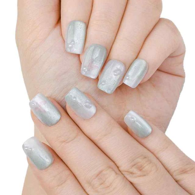 Sethexy フランス手作りネイルチップ ショートバレリーナチップ 蝶柄 プレスオンネイル ブルー 立体レリーフ 付け爪 無地 ラインストーン つけ爪 星柄 3D爪 かわいい ファッション フェイクネイル おしゃれ 小さい爪用 韓国 マグネット セルフネ