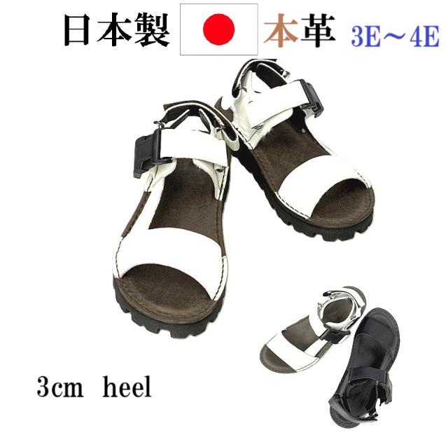 日本製 本革 サンダル レザーサンダル スポーツタンクソールサンダル レディース ローヒール フラット 幅広 3e 4e 外反母趾 カジュアル コンフォートサンダル おしゃれ