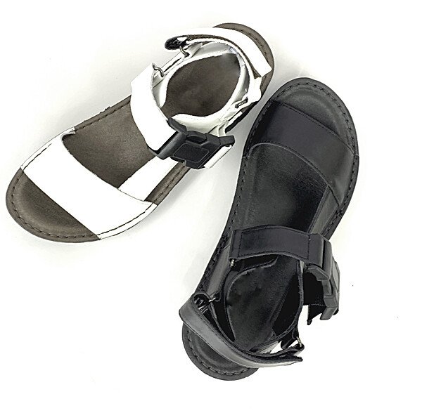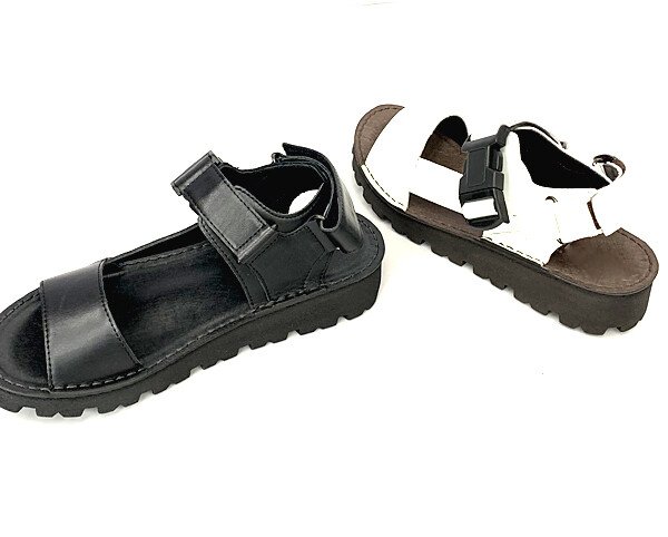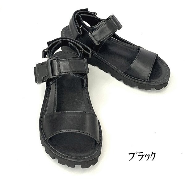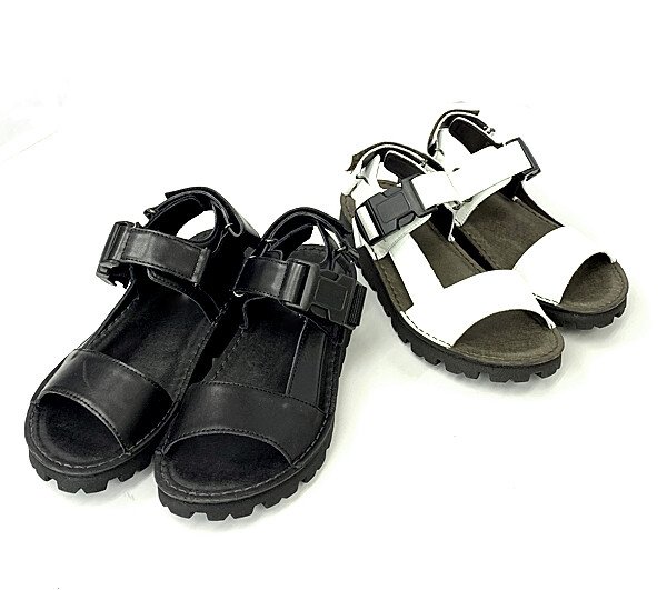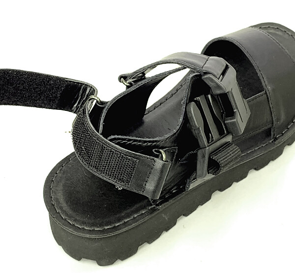 太めのベルトに厚めのソールでボリュームのある武骨な印象がトレンディーで格好いいレザーサンダル