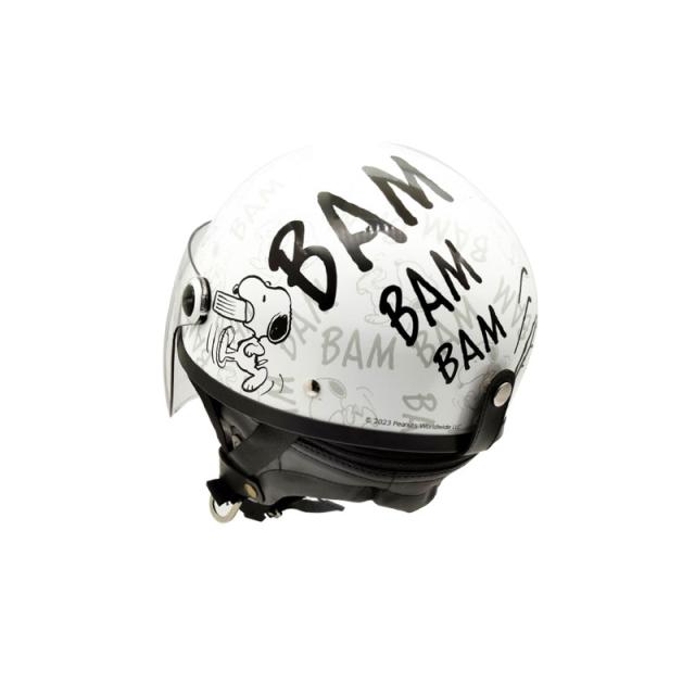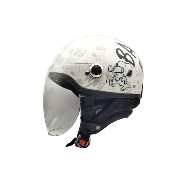 SNOOPY ハーフヘルメット ホワイト シールド付 125cc以下専 57〜59cm モノトーンデザイン アークス SNH-103