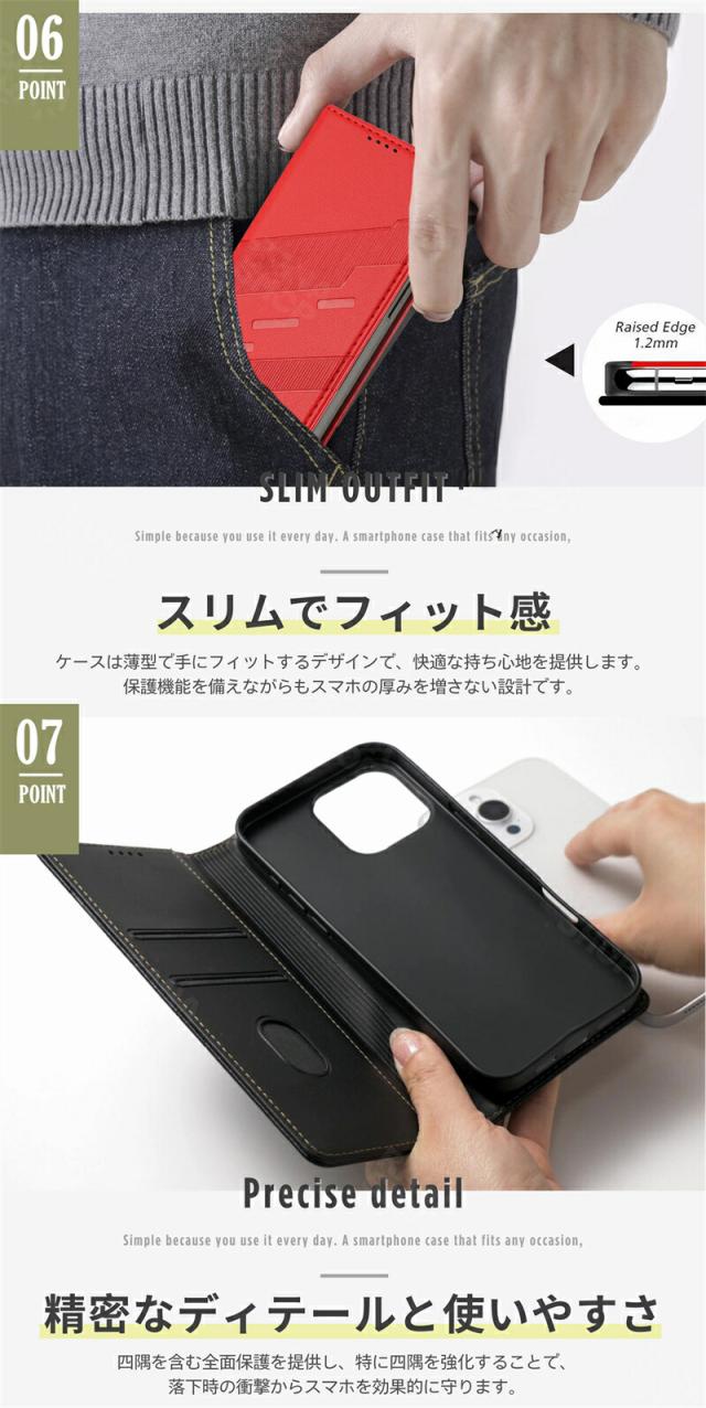 ?高級感のあるレザー風素材で、持つだけでおしゃれ感アップ! ?マグネットでしっかり閉じることができ、使いやすい設計。 ?多機能カードスロットで、スマホケースがミニ財布に変身! ?スタンドデザインで動画視聴や通話がもっと快適に! ?軽量設計で、余分な負担をかけず、日常の持ち運びに便利。 ?背面カメラ部分はご選択の機種に合わせて設計、加工されております。 ?個性を演出の8色を用意しており、それぞれ鮮やかで活気に満ちています。 ※写真はOPPO Reno11 Aの例です。 |