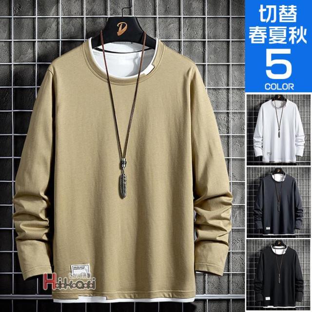 長袖Tシャツ メンズ ロンT 切り替え クルーネック Tシャツ 無地 春服 インナー 20代 30代 40代 白 黒