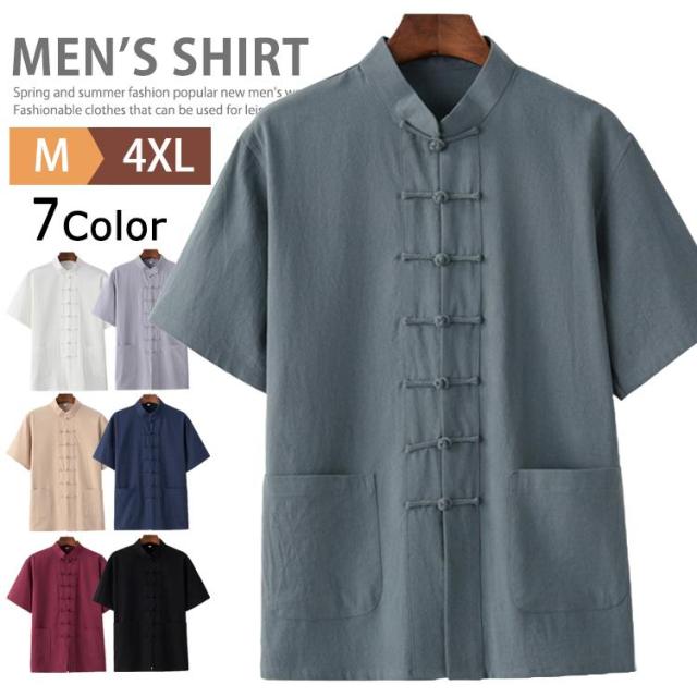 チャイナシャツ メンズ 半袖 カジュアルシャツ スタンドカラーシャツ トップス 綿麻 チャイナ風 カンフーシャツ 漢服 父の日