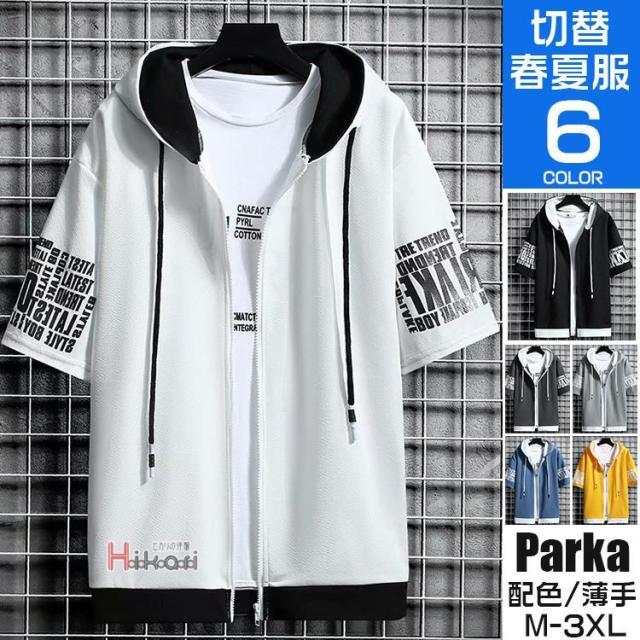 パーカー 半袖 ジップアップパーカー メンズ 羽織り 半袖パーカー 切り替え カラー配色 シャツジャケット おしゃれ 夏物