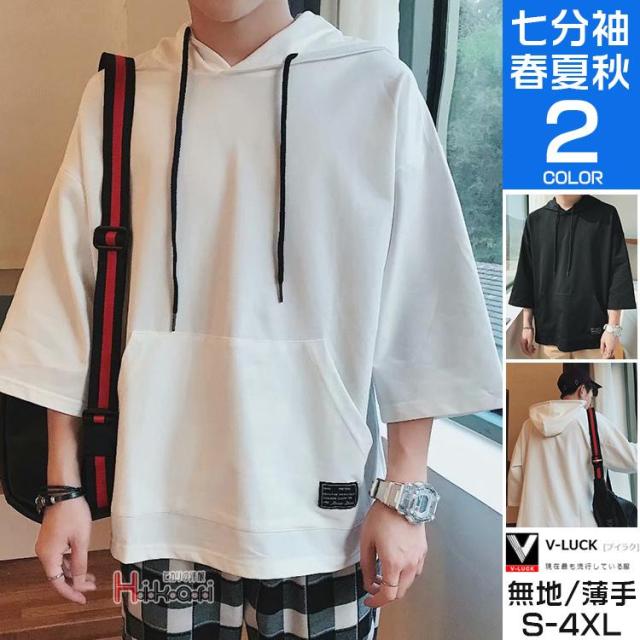 パーカー メンズ 七分袖 七分袖パーカー 無地 夏パーカー 半袖パーカー プルオーバー カジュアル 夏 父の日