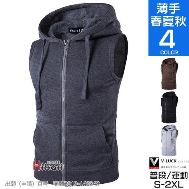 パーカー 薄手 メンズ ジップパーカー タンクトップ ノースリーブ ジップアップ 無地 スポーツ 羽織 夏服