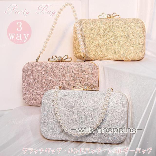 パーティーバッグ 3way クラッチバッグ ハンドバッグ ショルダーバッグ レディース 和装バック 結婚式 二次会 披露宴 発表会 同窓会 お呼ばれ フォーマル