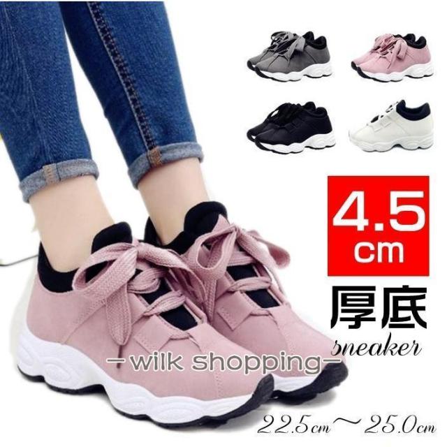 厚底スニーカー レディース 22.5cm?25.0cm スポーツ 春夏秋冬 4.5cmヒール レースアップ シューズ ランニング ローカット カジュアル 美脚 疲れない 痛くない