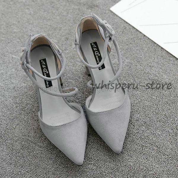 パンプス 太ヒール ポインテッドトゥ チャンキーヒール スエード調 アンクルストラップ レディースパンプス アンクルストラップ 疲れにくい ポインテッドトゥ レディース パーティー 二次会 発表会 キャバ サンダル 大人 キレイめ パーティーシューズ