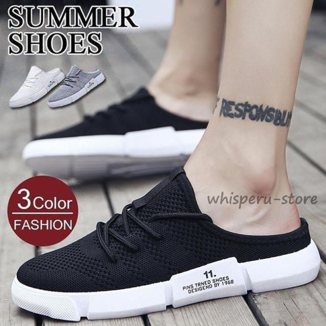 スニーカー メンズ スリッポン かかとなし シューズ 履きやすい 靴 サボスニーカー 黒 白