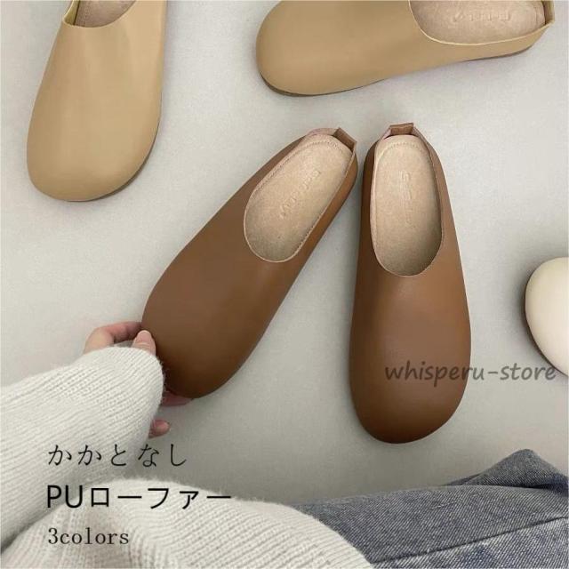 フラットシューズ かかとなし レディース ローファー PUレザー サンダル スリッパ 夏 スリッパサンダル 前詰まり 室外穿き カジュアルシューズ